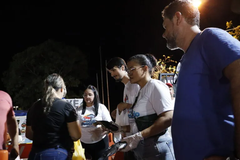 Um dos pontos centrais da programação foi a distribuição gratuita de peixes mediante a doação de 1 quilo de alimento não perecível. A ação conectou incentivo ao consumo com apoio a famílias em situação de vulnerabilidade, ampliando o impacto social do evento.